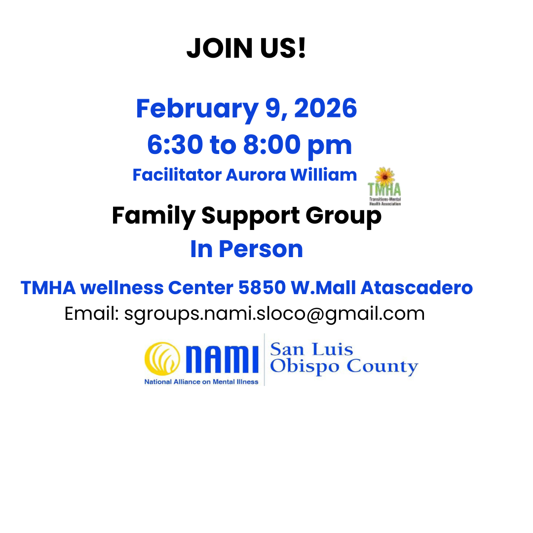 Having a mental illness can at times be a lonely, bewildering experience. Knowing how to help a loved one can be just as hard. But, there is hope. Register now for the next 8-week session starting January 17, 2026 to take place in San Luis Obispo.